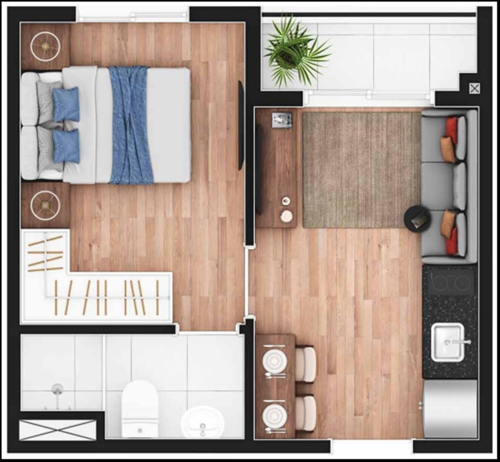 SUGESTÃO DE DECORAÇÃO PARA O APARTAMENTO DE 1 DORMITÓRIO