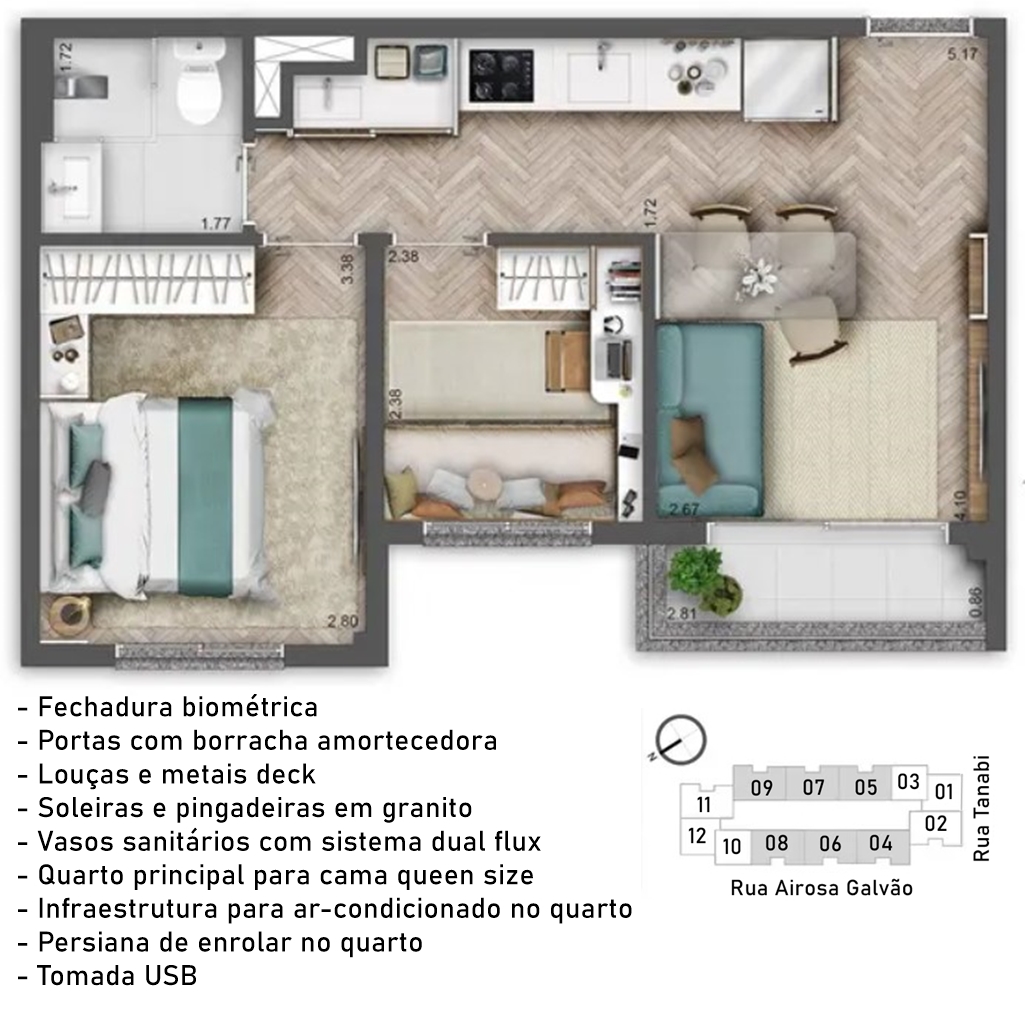 PLANTA RESIDENCIAL DE 39 M2, 2 DORMITÓRIOS, FINAIS 04, 05, 06, 07, 08 E 09
