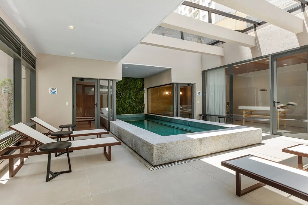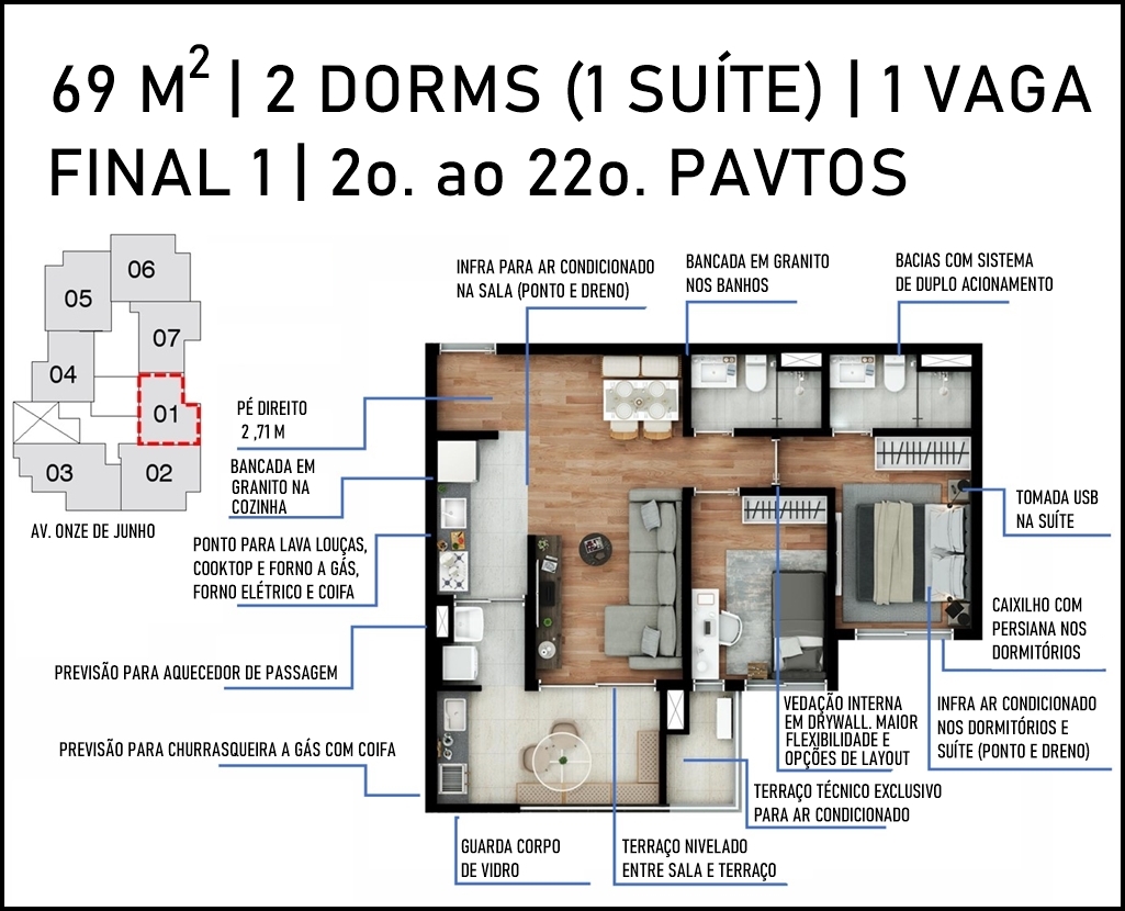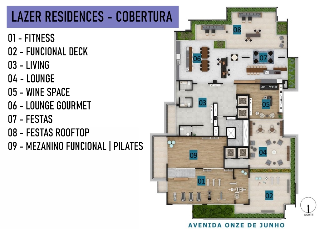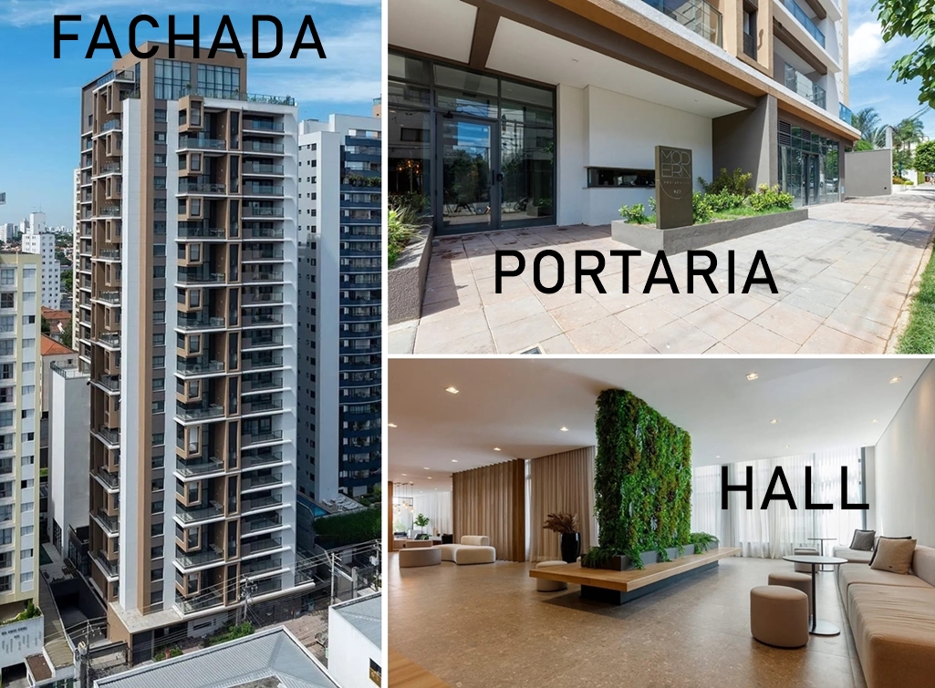 FACHADA, PORTARIA E HALL COM PÉ DIREITO DUPLO