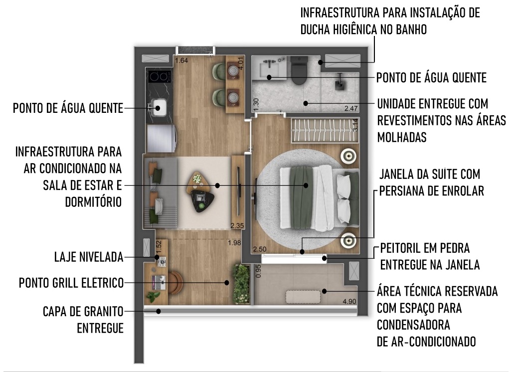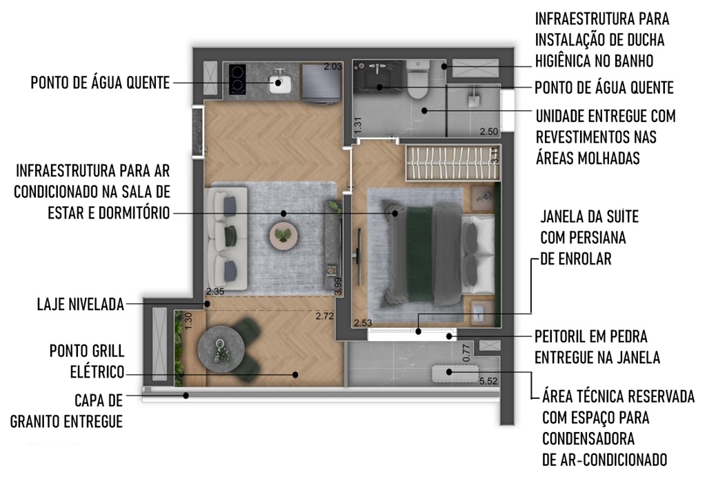 SUGESTÃO DE DECORAÇÃO PARA AS UNIDADES DE 33 M2