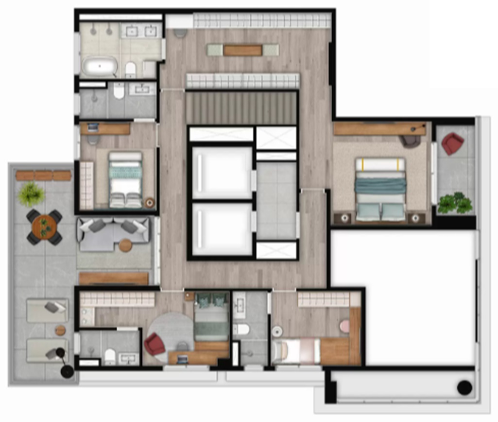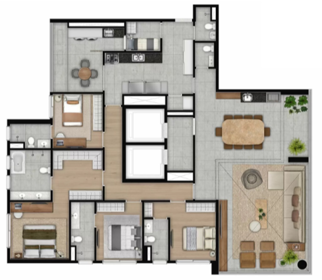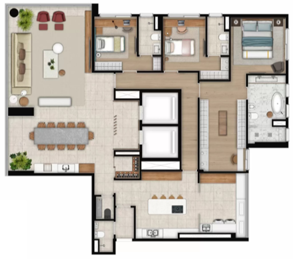 PLANTA OPÇÃO 220 M2 COM 3 SUITES E LIVING AMPLIADO