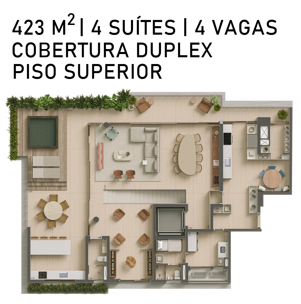 VARANDA DA COBERTURA DUPLEX COM SUGESTÃO DE DECORAÇÃO