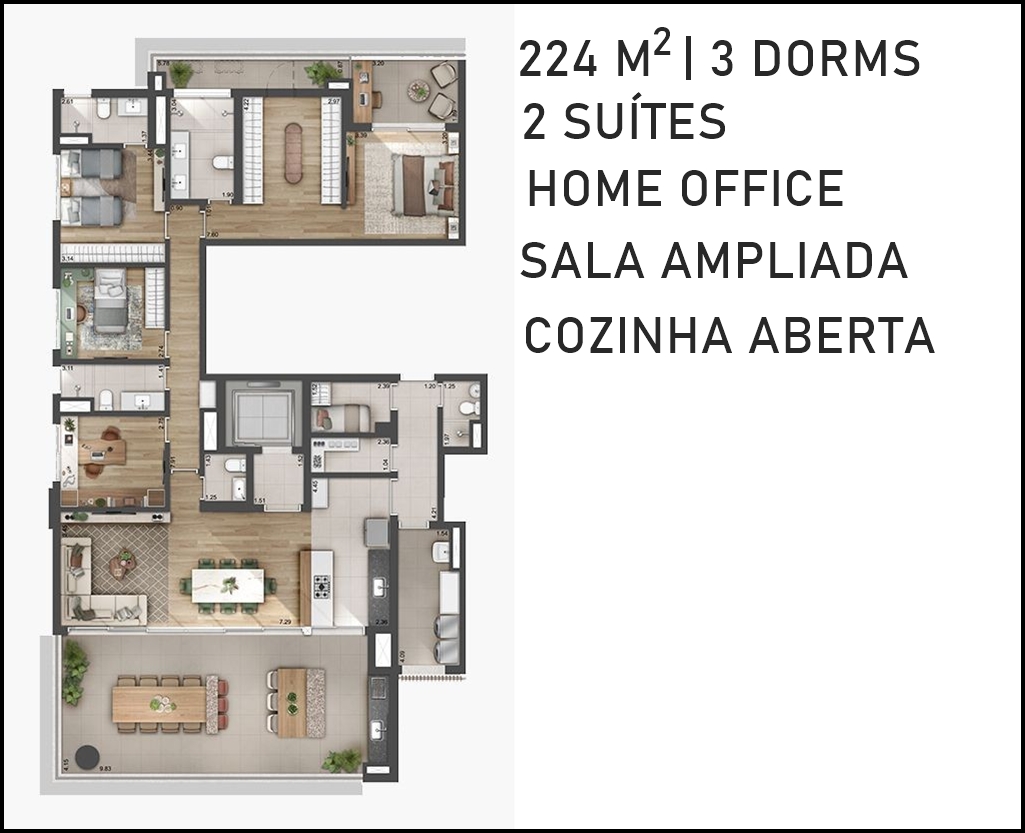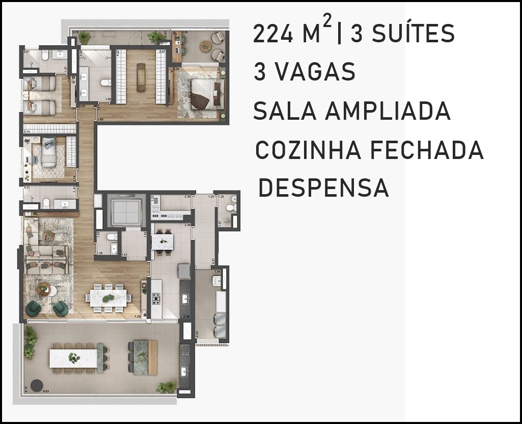 TERRAÇO DO APARTAMENTO DE 224 M2 COM SUGESTÃO DE DECORAÇÃO