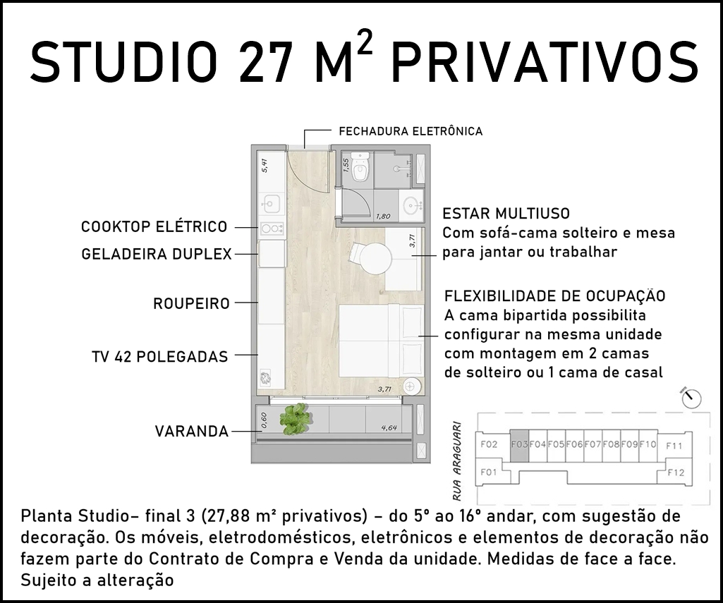 SUGESTÃO DE DECORAÇÃO PARA OS STUDIOS DE 27 M2