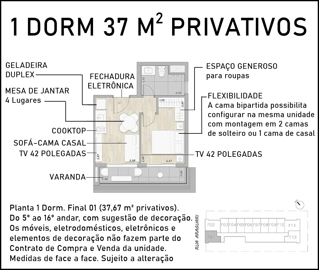 SUGESTÃO DE DECORAÇÃO PARA OS APARTAMENTOS DE 1 DORM DE 37 M2