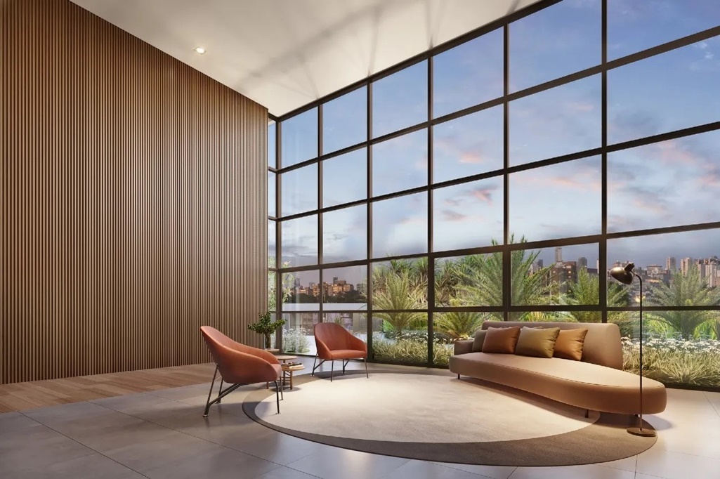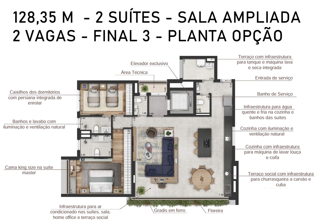 LIVING DO APARTAMENTO DE 128,50 M2 COM SUGESTÃO DE DECORAÇÃO
