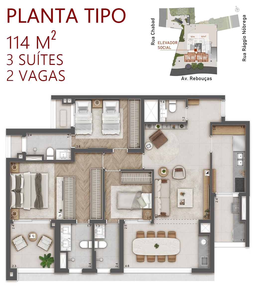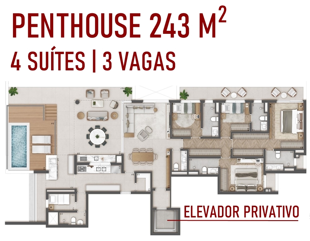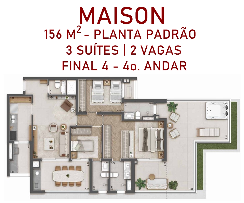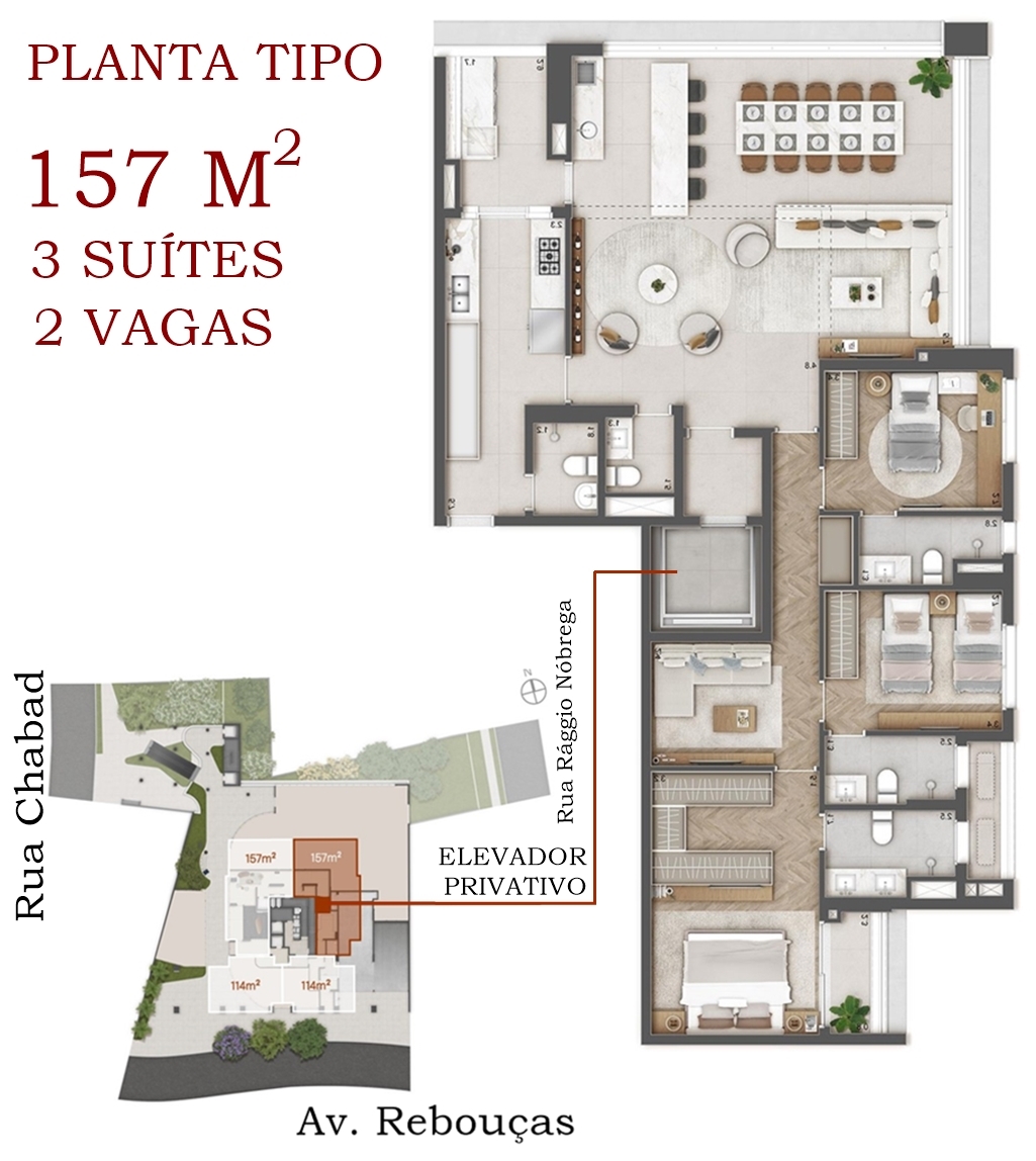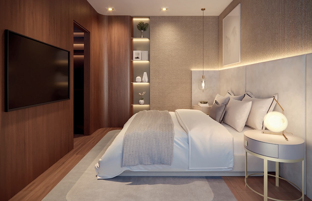 SUÍTE MÁSTER DO APARTAMENTO DE 157 M2 COM SUGESTÃO DE DECORAÇÃO