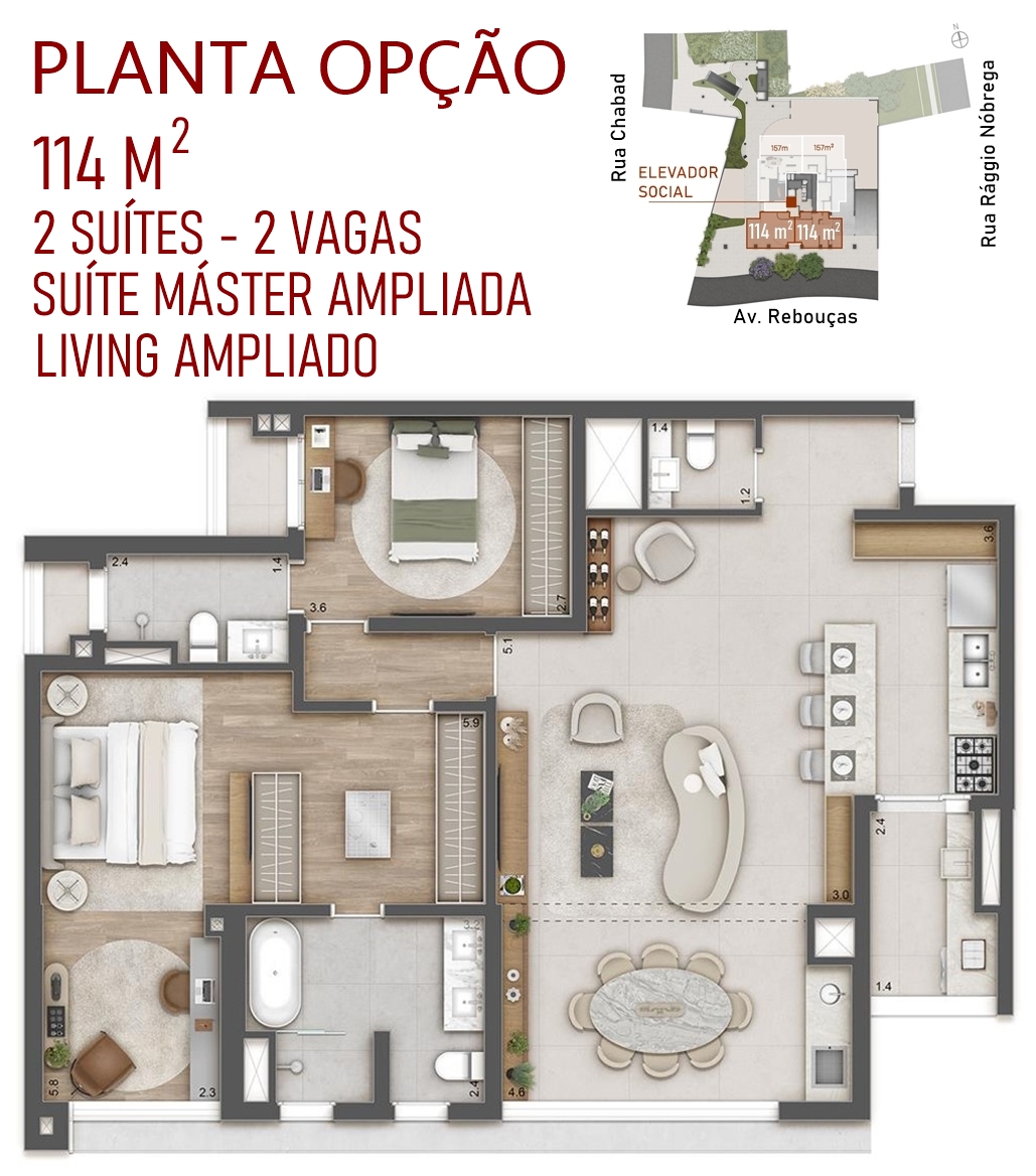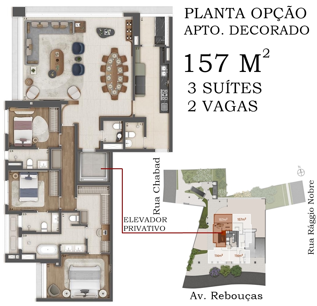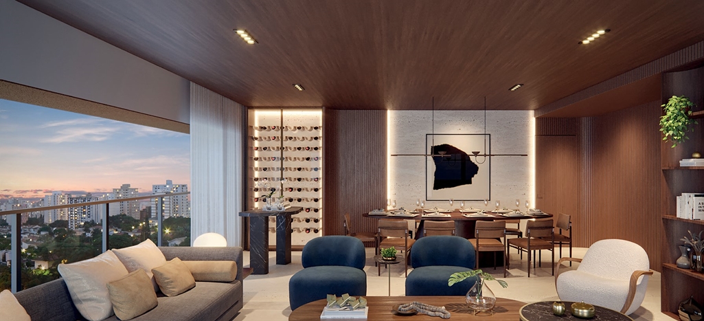 LIVING DO APARTAMENTO DE 157 M2 COM SUGESTÃO DE DECORAÇÃO
