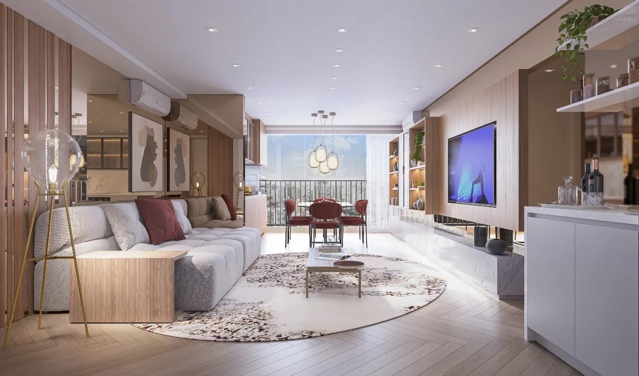 LIVING AMPLIADO DO APARTAMENTO DE 48