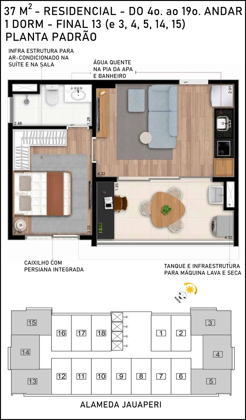 SUGESTÃO DE DECORAÇÃO PARA 1 DORMITÓRIO DE 37 M2