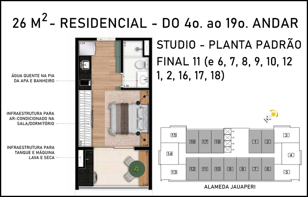 SUGESTÃO DE DECORAÇÃO PARA O STUDIO DE 26 M2