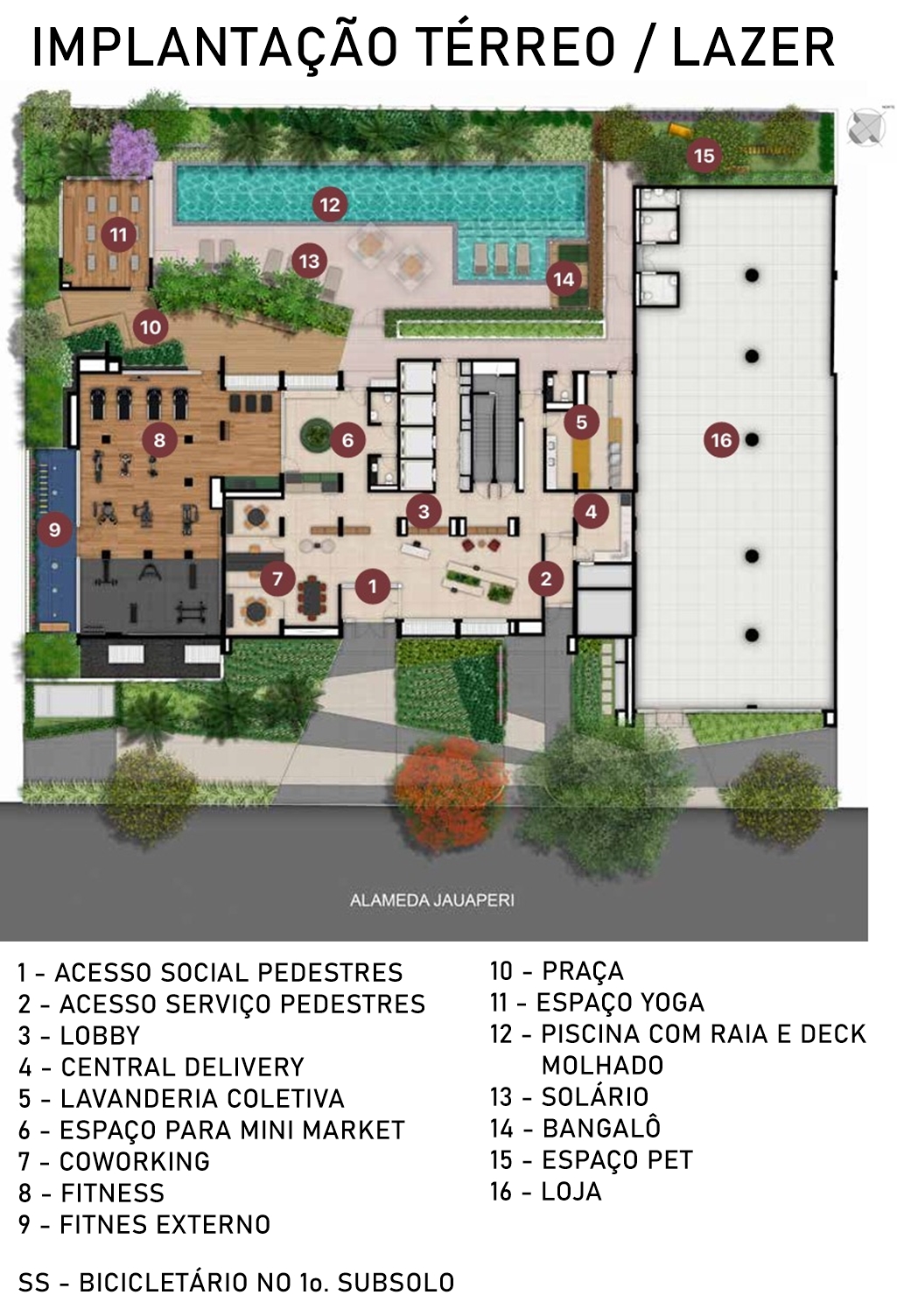 | Piscina coberta | Bicicletário | ||||