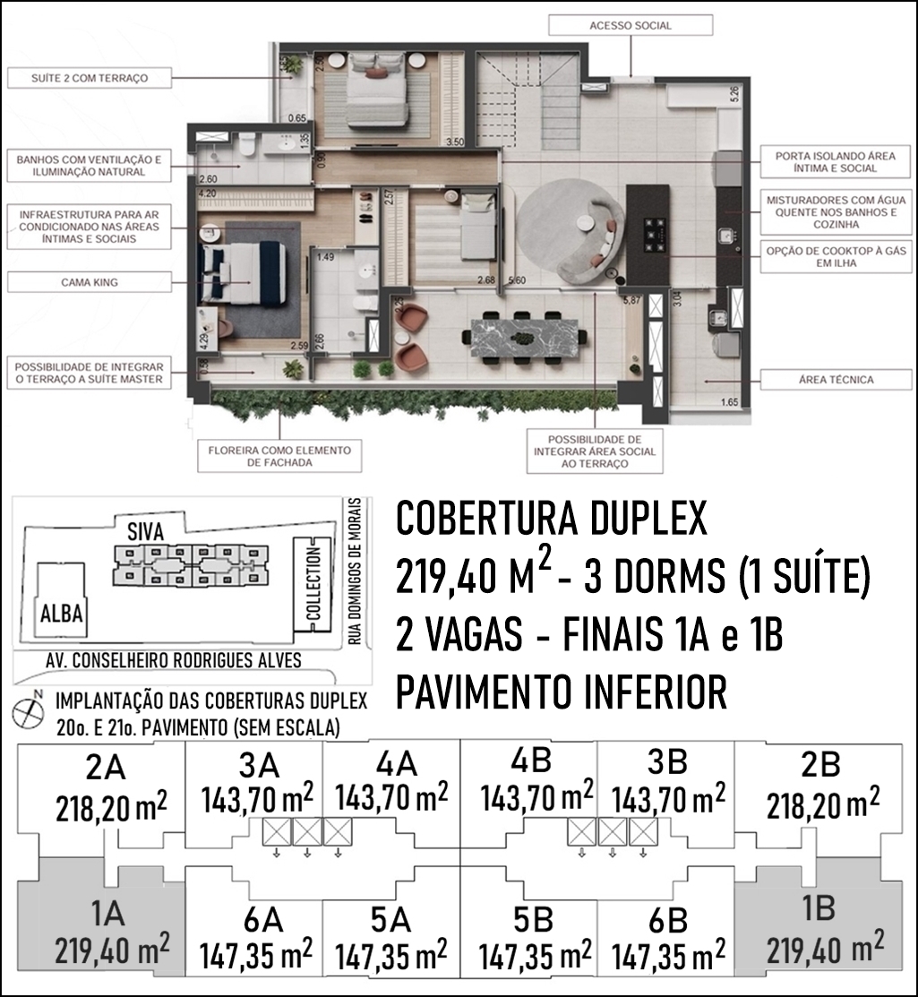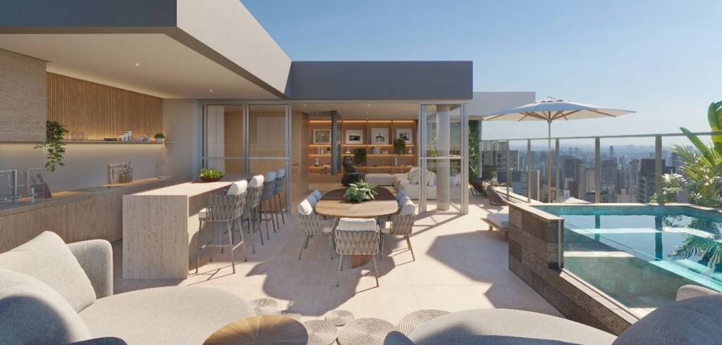 TERRAÇO DA COBERTURA DUPLEX DE 219 M2 COM SUGESTÃO DE DECORAÇÃO