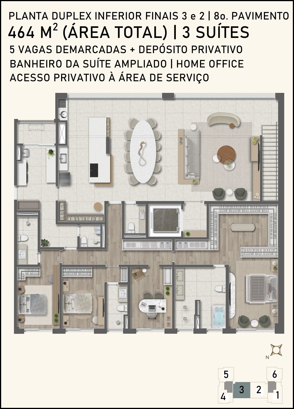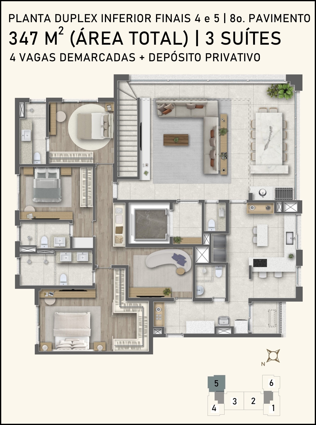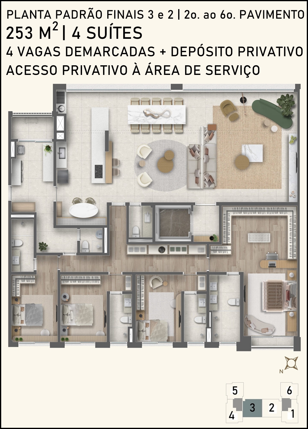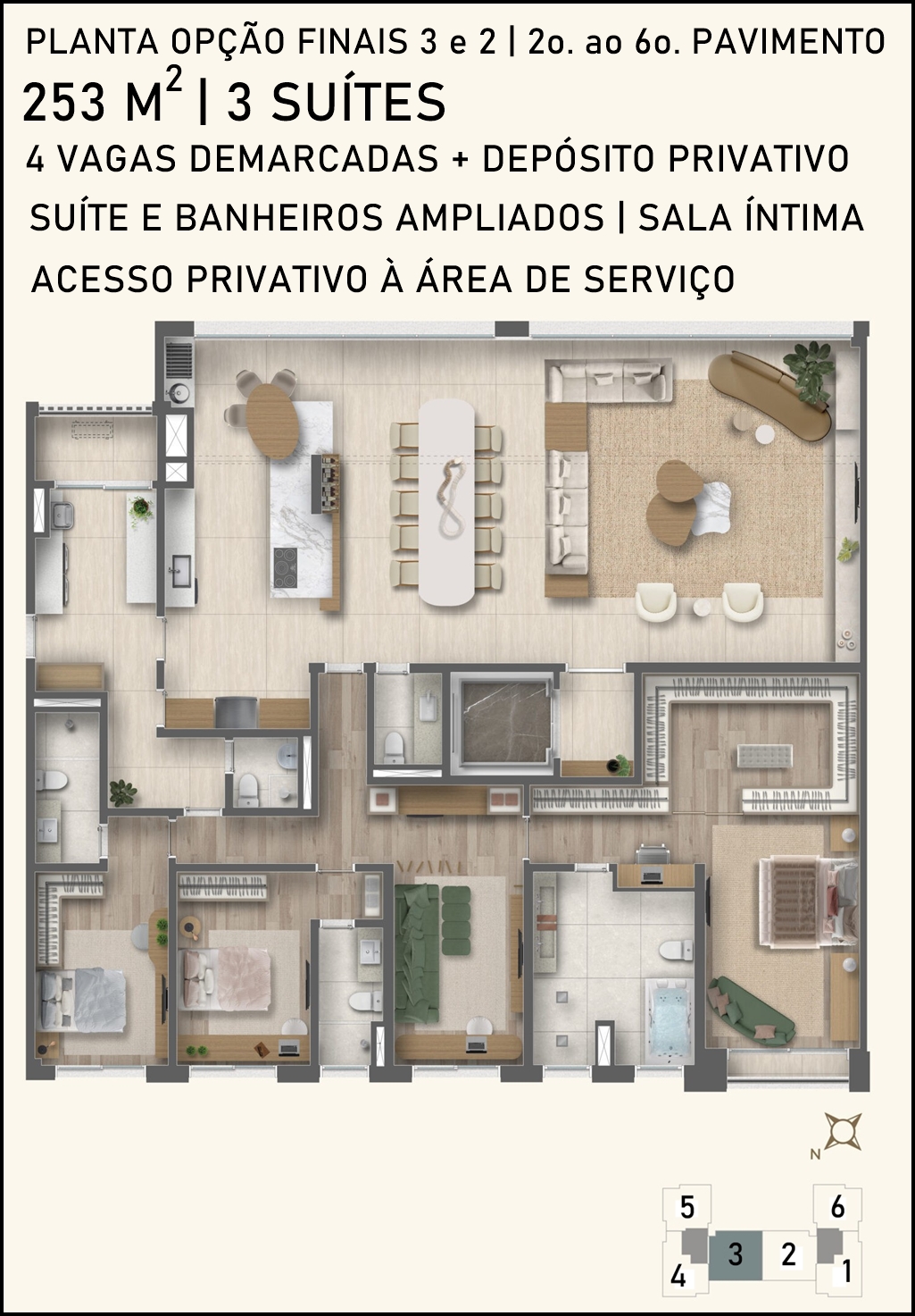 LIVING DO APARTAMENTO DE 253 M2 COM SUGESTÃO DE DECORAÇÃO