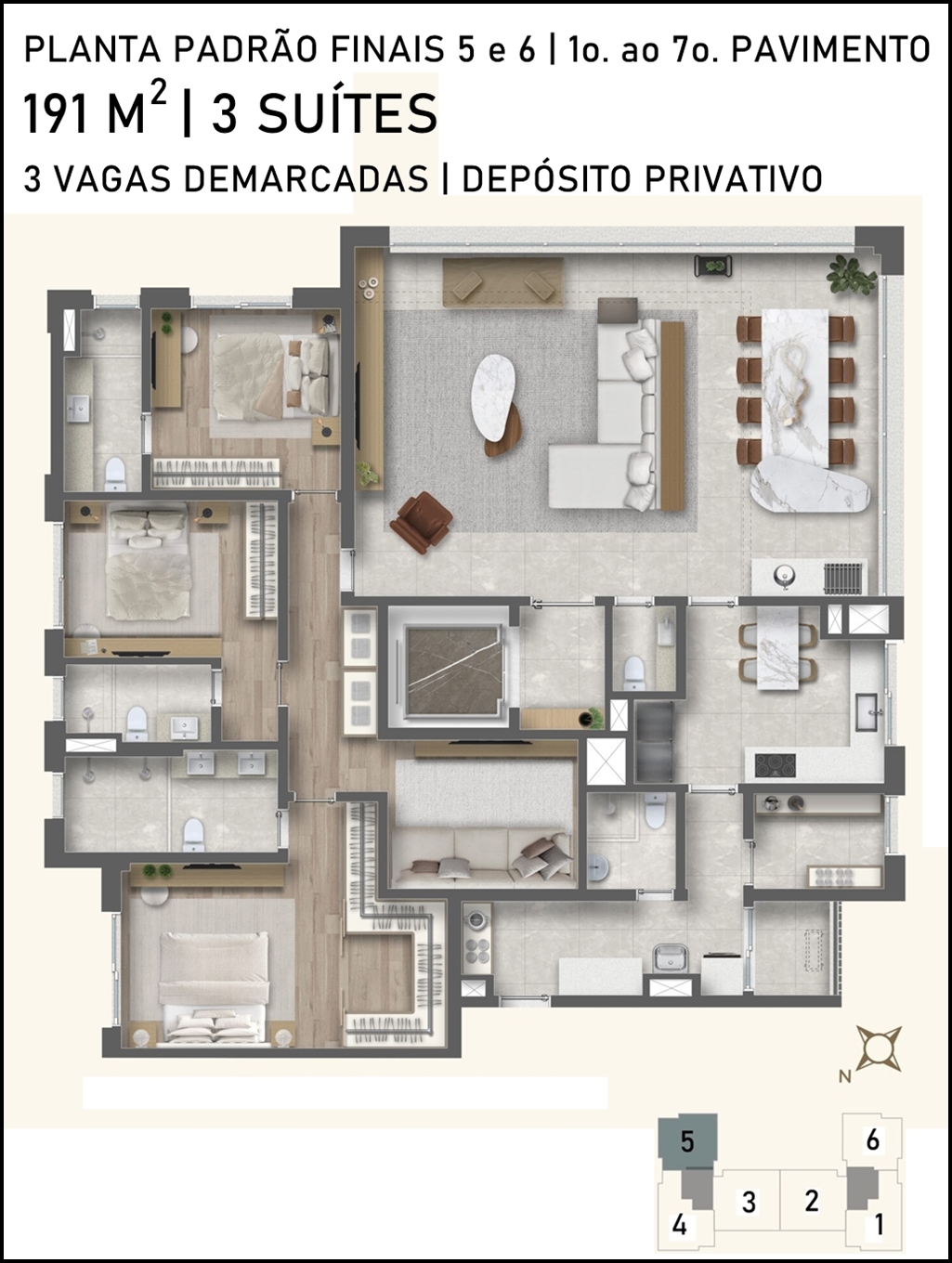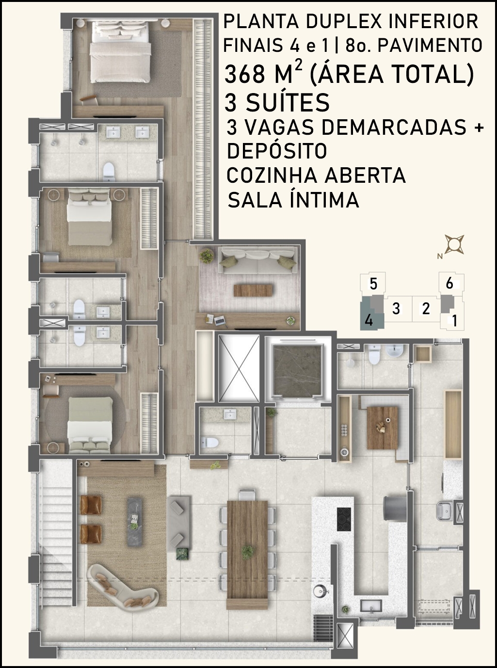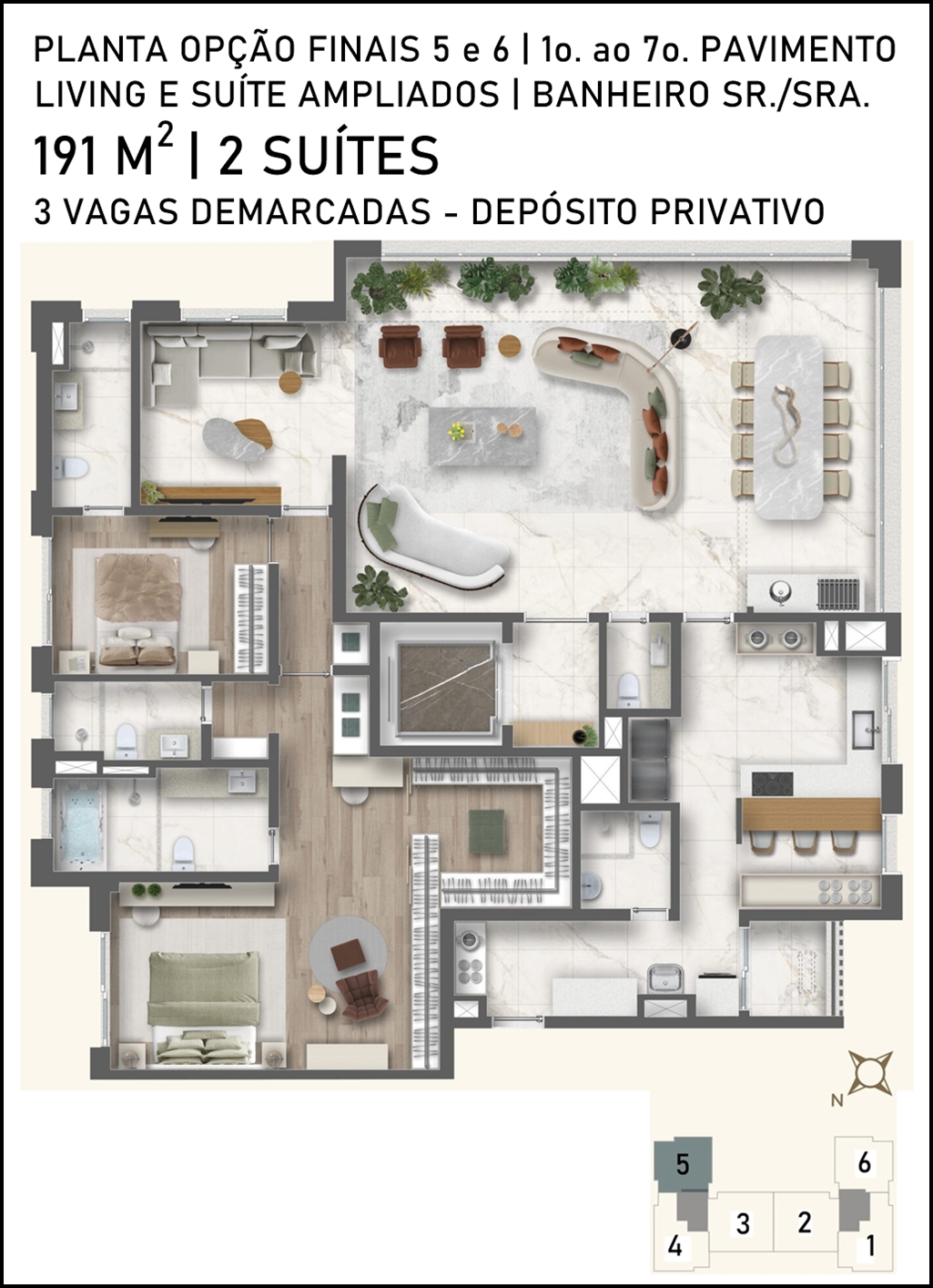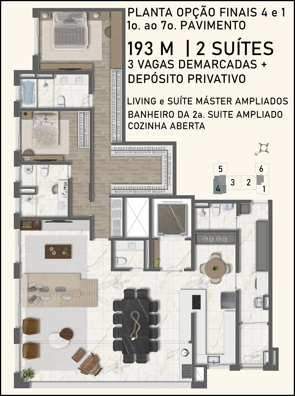 LIVING DO APARTAMENTO DE 253 M2 COM SUGESTÃO DE DECORAÇÃO