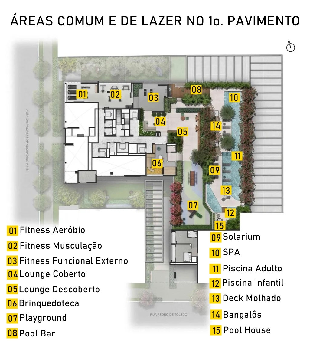 PISCINAS ADULTO E INFANTIL, DECK MOLHADO E SOLÁRIO