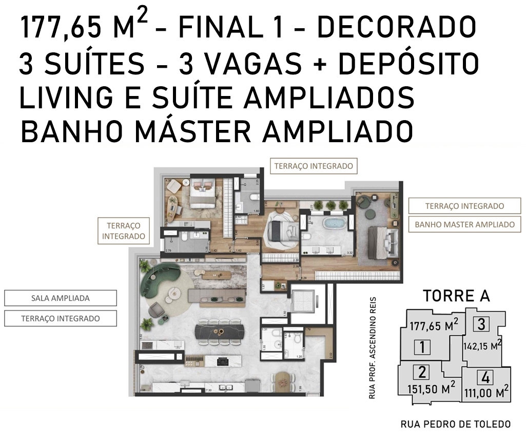 SUÍTE MÁSTER DO APARTAMENTO DE 177,65 M2 VERSÃO DECORADO